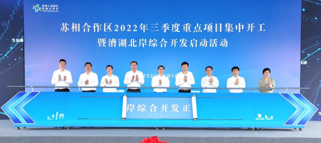 2022年8月18日,苏相合作区今年三季度总投资近200亿元的33个重点项目集中开工、签约,总投资超150亿元的漕湖北岸综合开发项目正式启动。